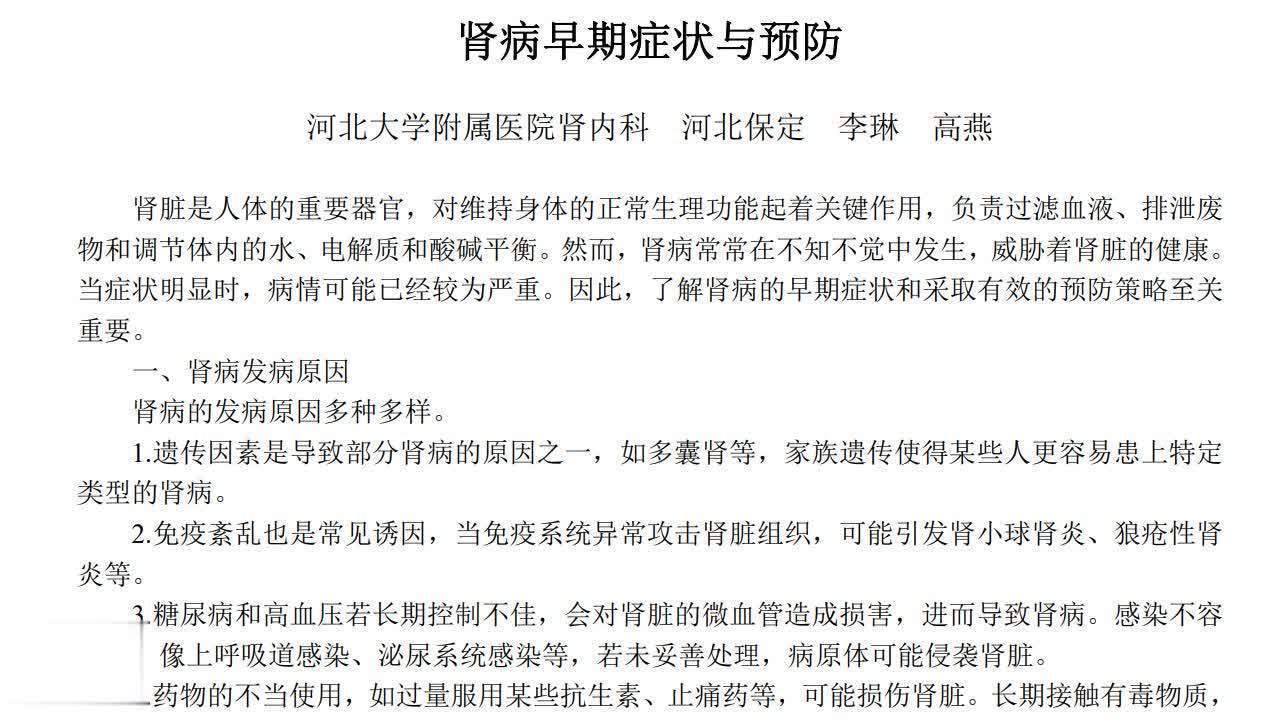 “肾病早期通常不会有太明显的症状。”王医生继续说道,“很多患者到了后期才会发现自己有肾病,但那时已经错过了最佳治疗时机。