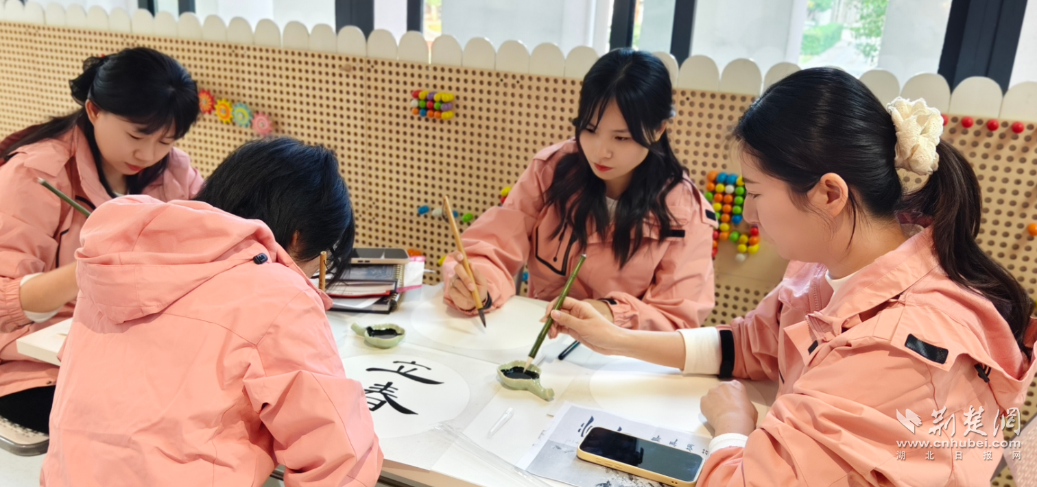 活动最后,精武社区党员代表、越秀国金商管的代表们与幼儿园教师一起,以二十四节气为载体,结合廉洁寓意进行书法创作。春分的“春风化雨,廉洁润心”、清明的“清正廉洁,明辨是非”等主题作品,在笔墨流转中传递出清廉文化的深厚底蕴。