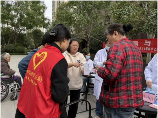 在中建城服重庆片区党支部的积极协调下,土主社区卫生服务中心的专业医护团队也受邀来到现场,开展“惠民义诊”服务。医护人员耐心地为业主提供免费的糖尿病健康咨询、血压测量等服务,并针对常见病、多发病的预防和保健知识进行了细致讲解。此举将健康关怀直接送达社区,尤其受到了老年业主的热烈欢迎。